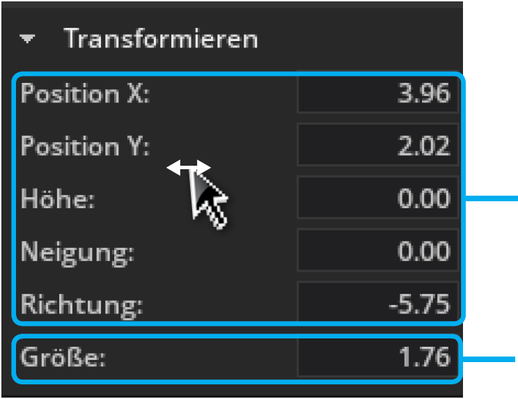 Tipp: Um einen Wert fließend zu ändern, klicke mit der Maus