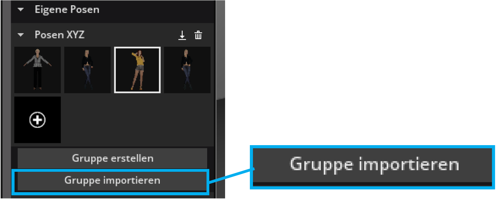 Um eine eigene Posengruppe zu importieren, klicke auf den