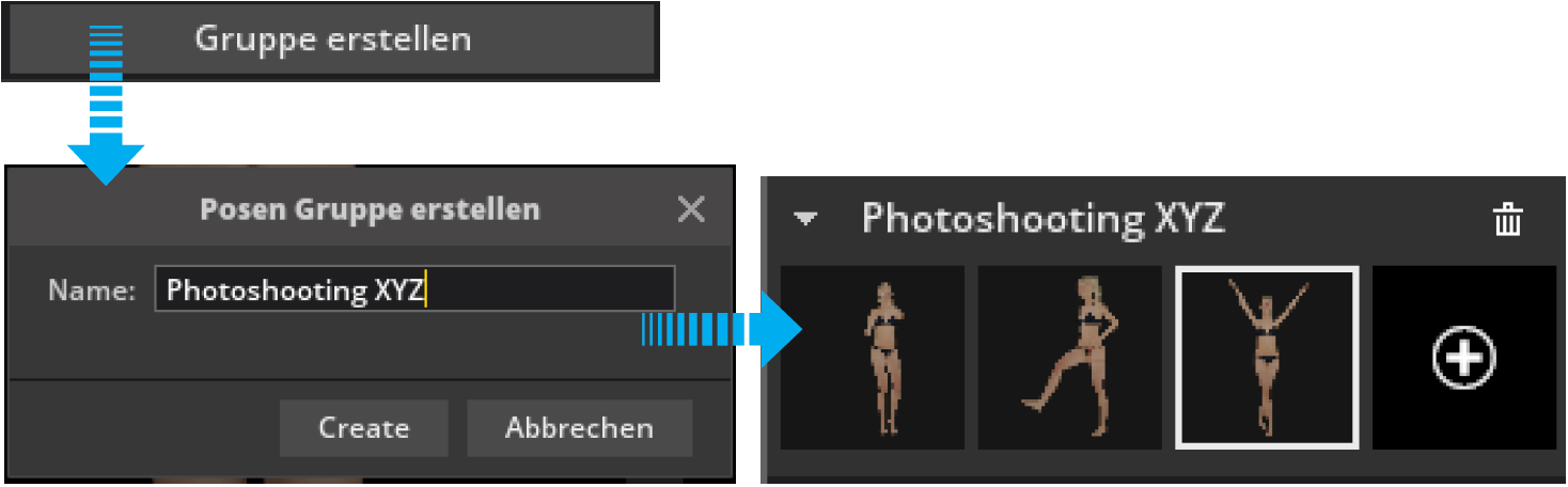 Deine Posen kannst du in Posengruppen zusammenfassen und