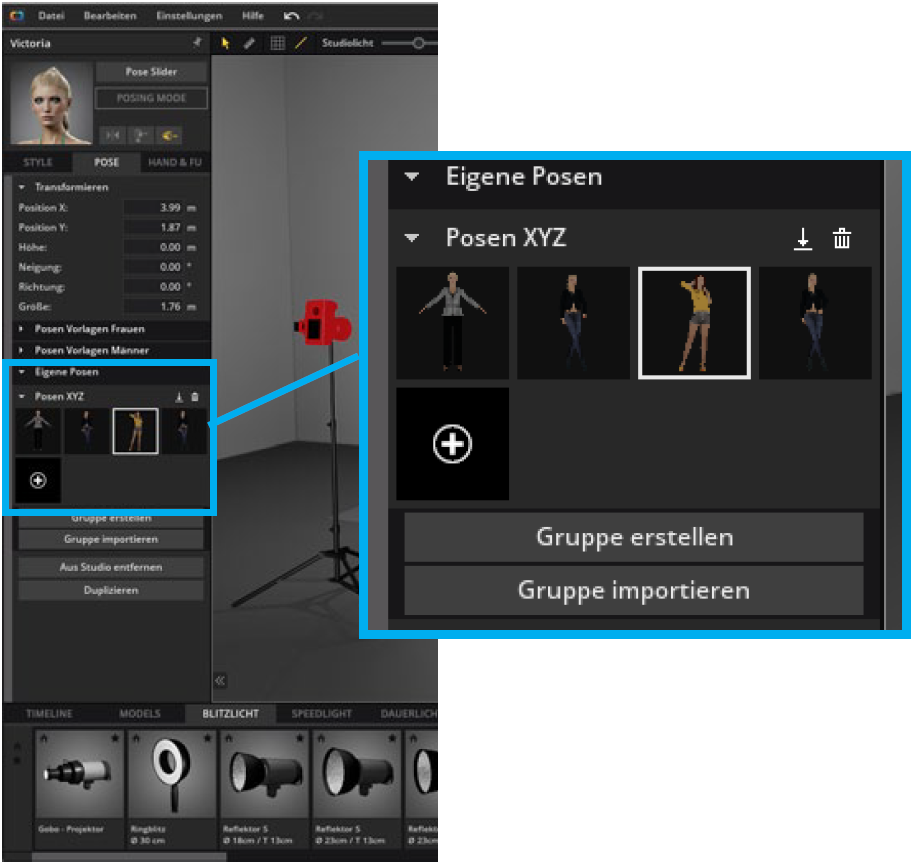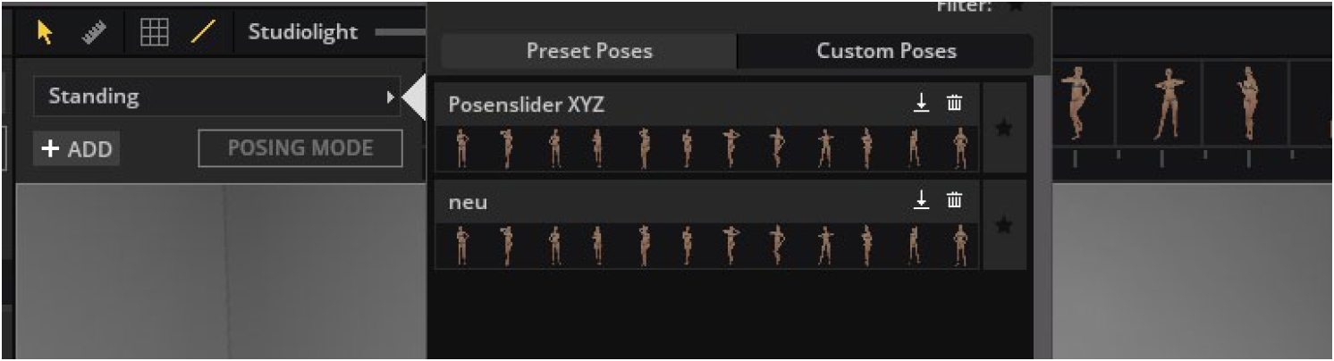- Fertige Posen aus der Posenbibliothek (Detaileinstellungen -->