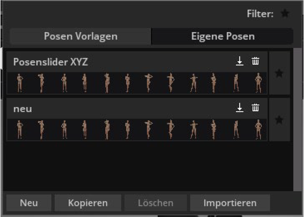 Jeder selbst erstellte Posenslider (Eigene Posen) kann exportiert