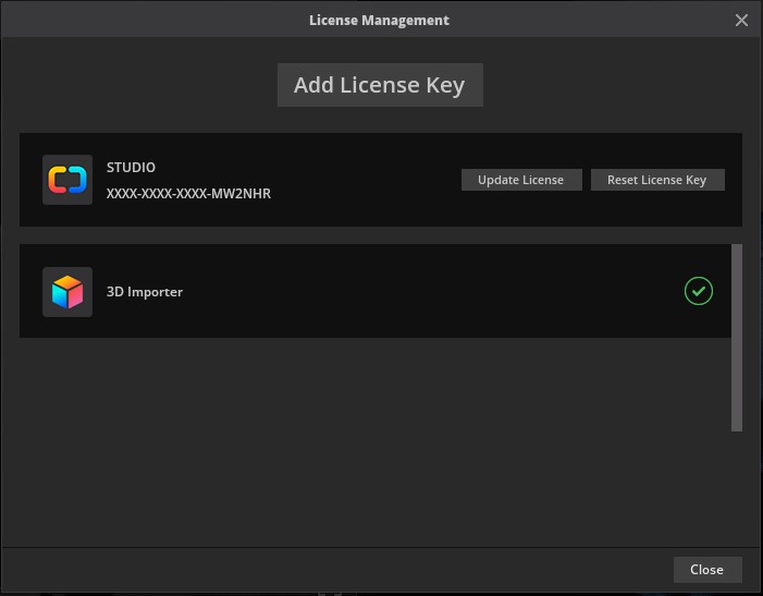 When you start your set.a.light after purchasing the 3D Importer add-on and you are in the studio, you will receive a message informing you about the new add-on. Please confirm with “ok”, then the license management will open.