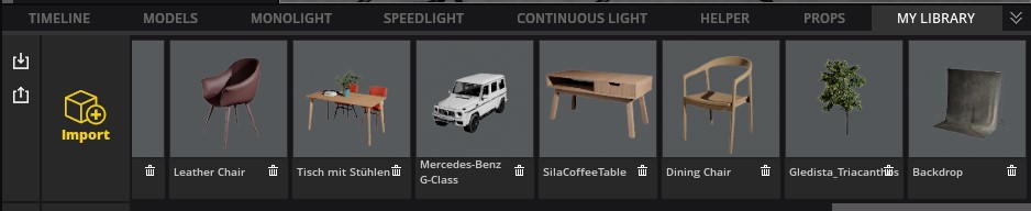 After you have closed the License Management, you will find a new tab “My Library” at the bottom. In My Library you can import new objects and later find all imported objects.