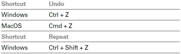 - In the menu bar, select “Edit” > “Undo” or “Edit” > “Repeat”