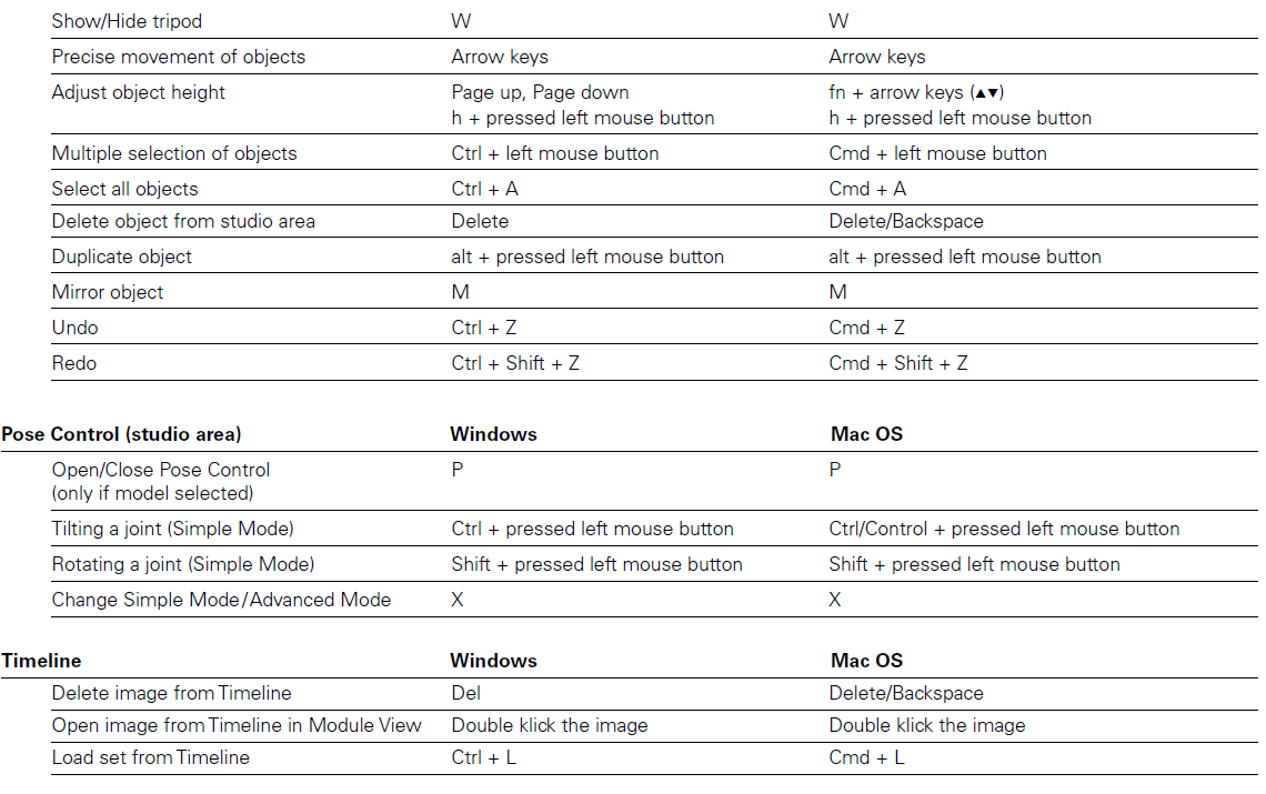 ショートカットを使用すると、set.a.light 3D をより速く使用できます。