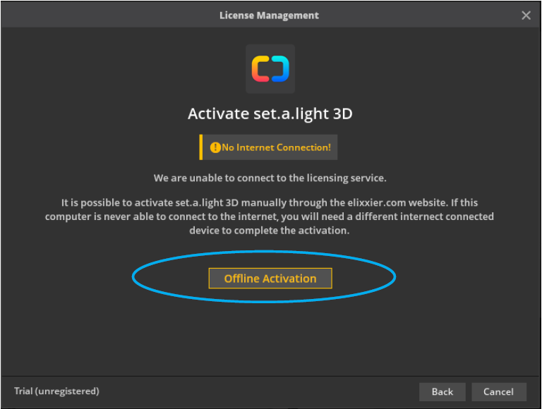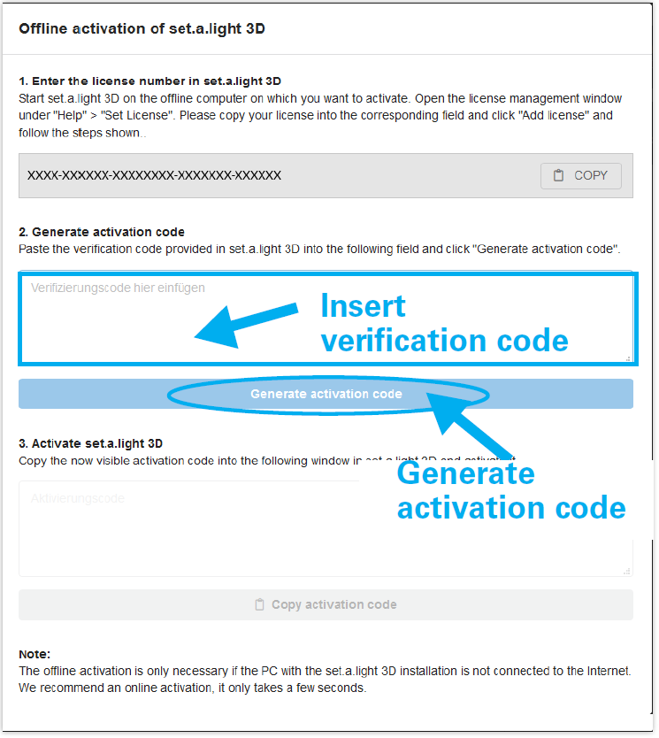 7. 您现在可以在新电脑上激活 set.a.light 3D