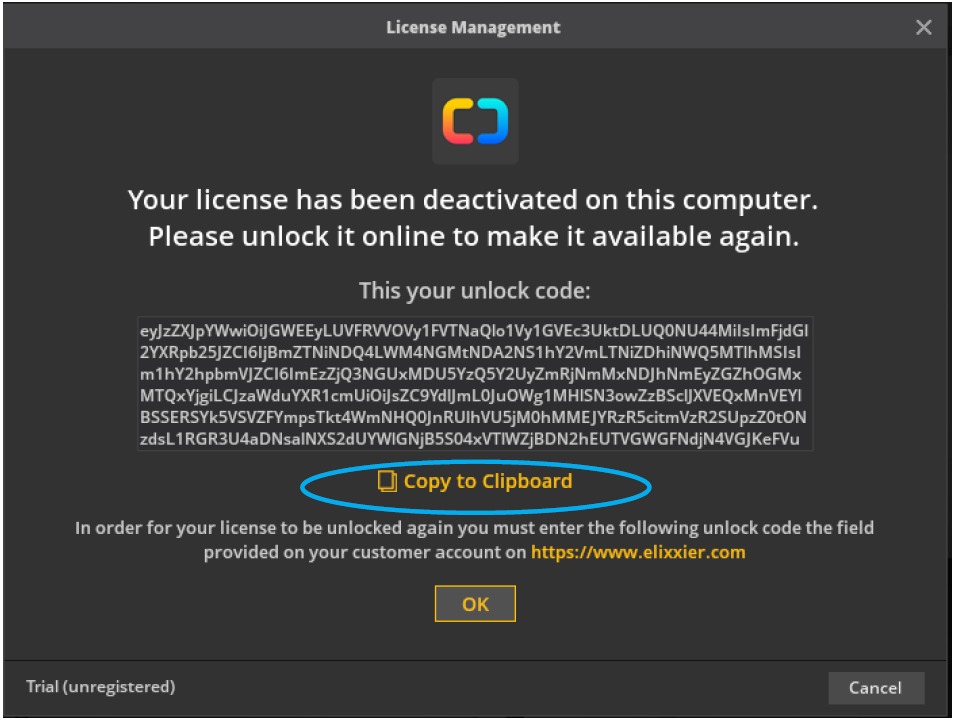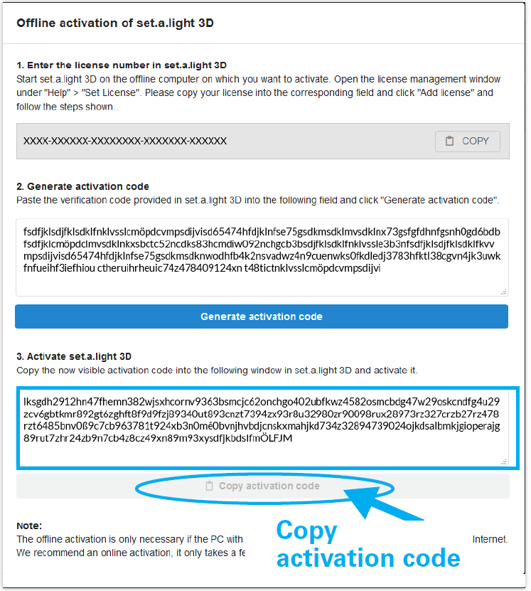 7. 复制现在可见的激活码并将其传输到离线计算机。