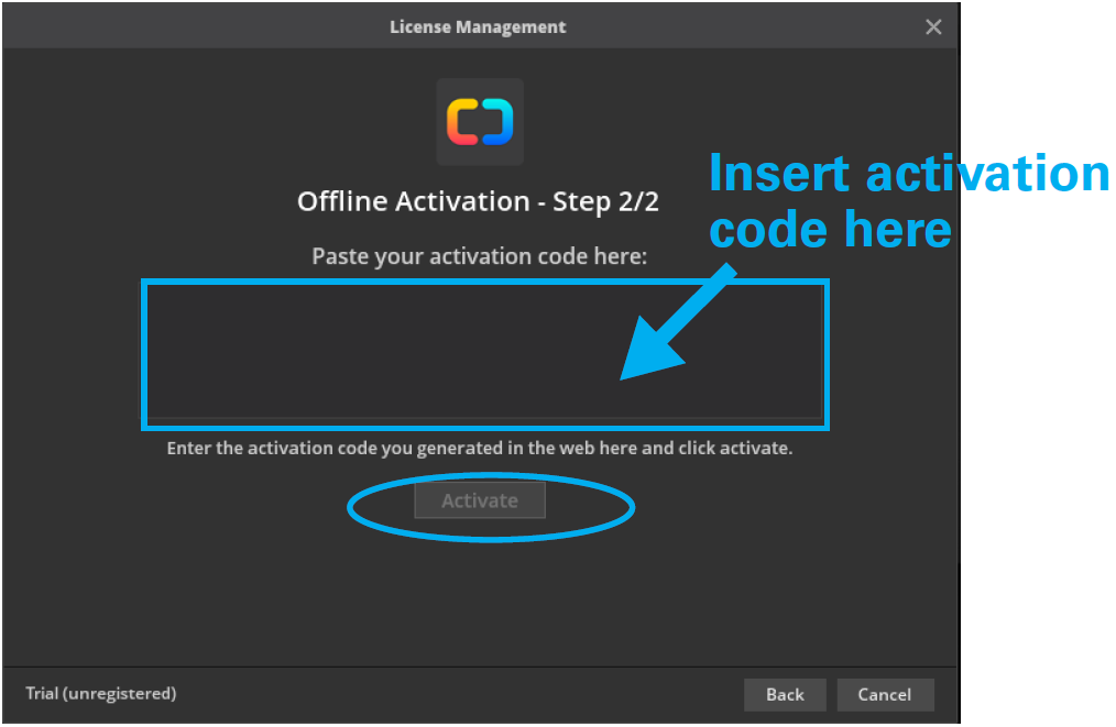8. 将激活码粘贴到set.a.light 3D 中的以下窗口中,然后单击“激活”。