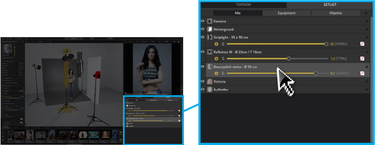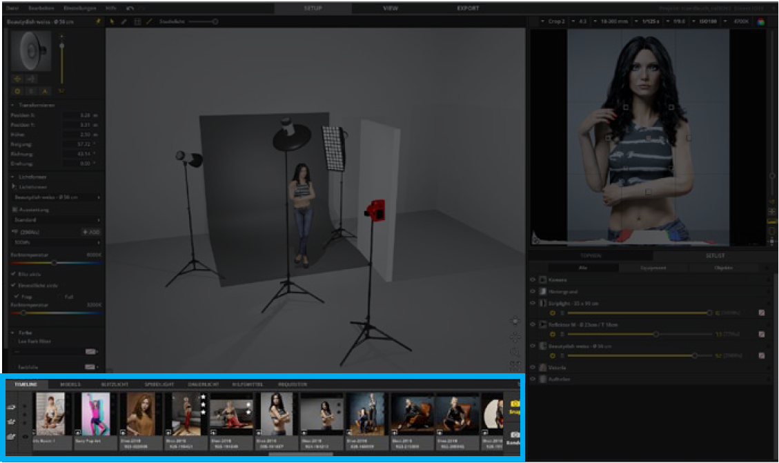 时间线展示了您在 set.a.light 中的虚拟拍摄过程