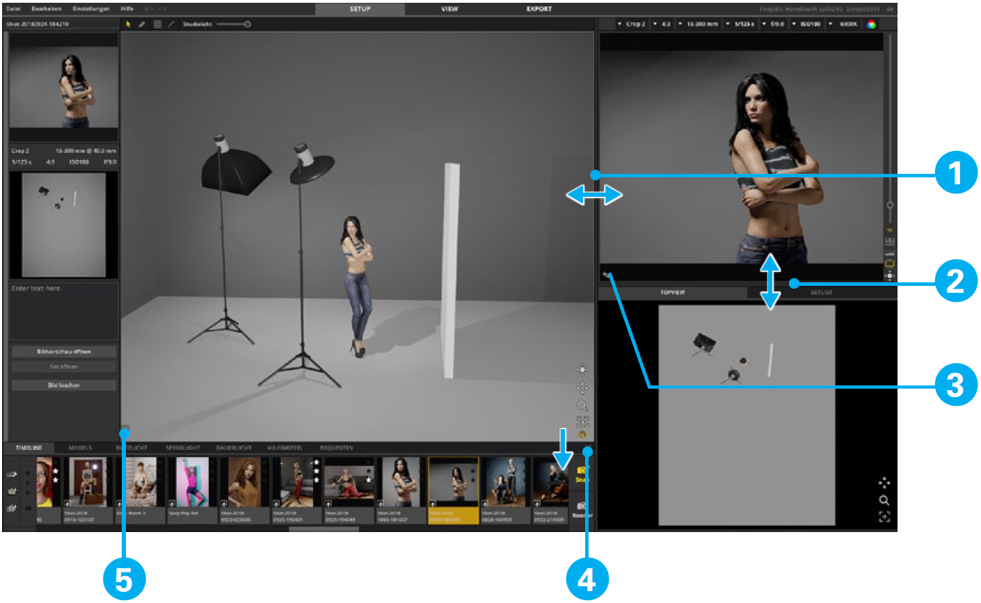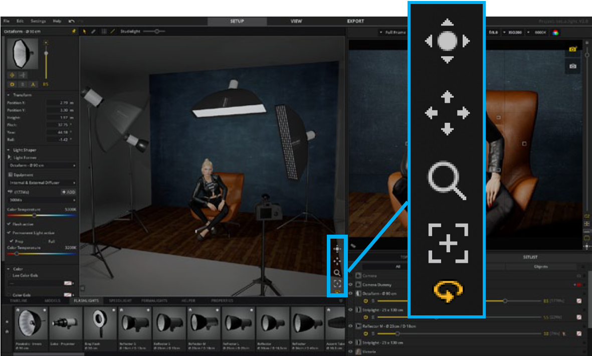 灯光设置。 模拟工作室区域构成了您的工作空间。 它