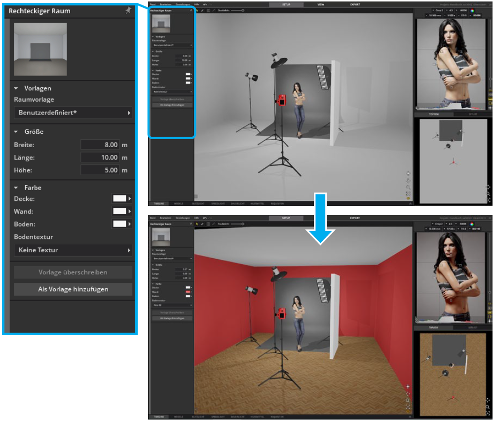 注意:请在 set.a.light 3D 中设置房间大小和颜色