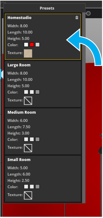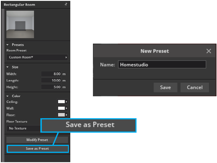 将您自己的工作室保存为房间预设