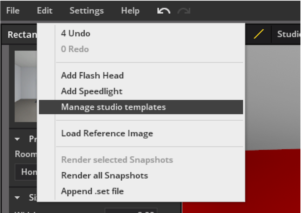 2. 单击菜单栏中的“管理工作室模板”。