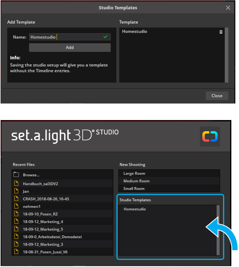 在“Studio 模板”的开始屏幕中启动 set.a.light 3D