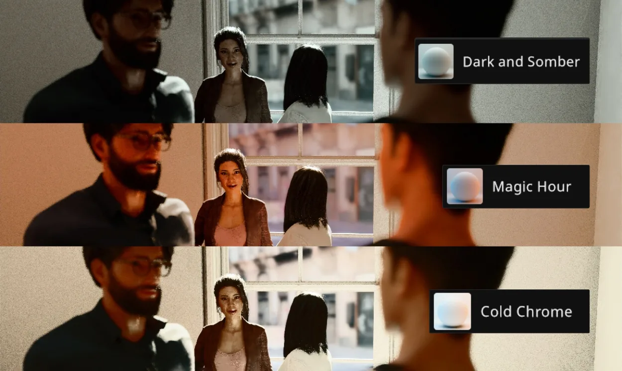 应用电影 LUT,立即预览你的场景在色彩分级后的效果。