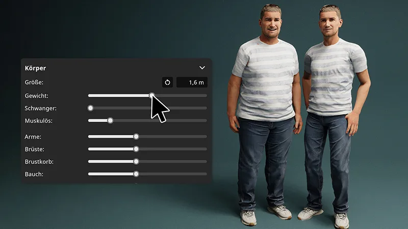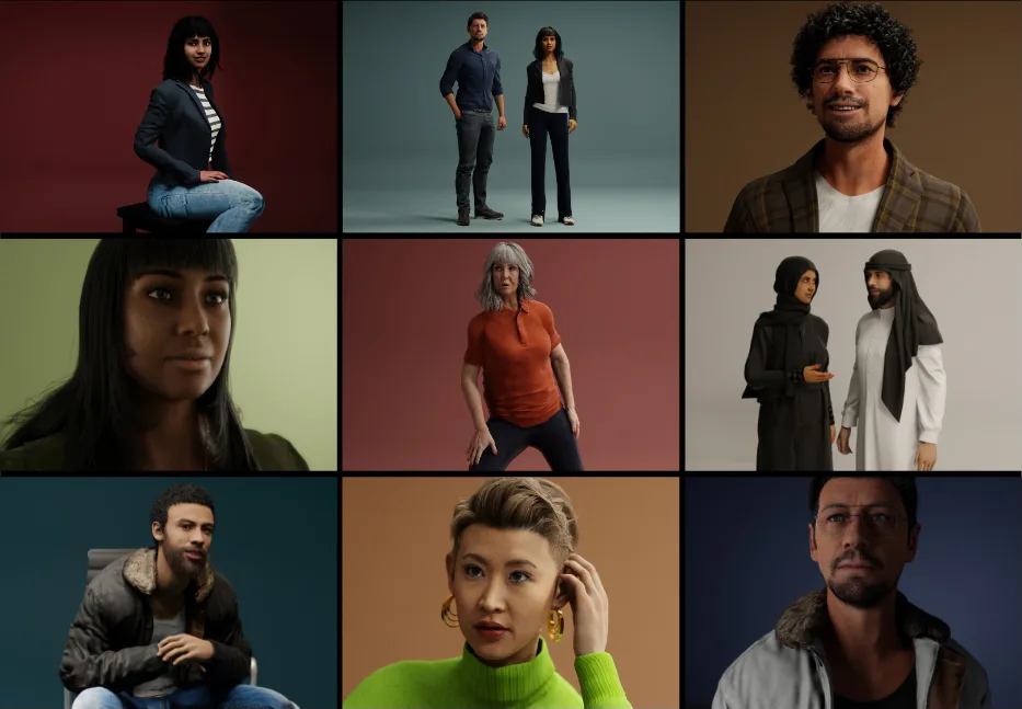 在 set.a.light 3D 中,你会发现各种灵活的模型,你可以轻松为你的项目进行自定义。只需点击几下,你就可以调整面部特征、肤色、发型、体型、服装和配饰,并将它们转化为独特的角色。将你的创作保存在库中,为任何项目构建多样化的角色阵容。