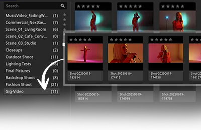 通过拖放轻松在项目和文件夹之间移动设置,以灵活地重新组织你的镜头。